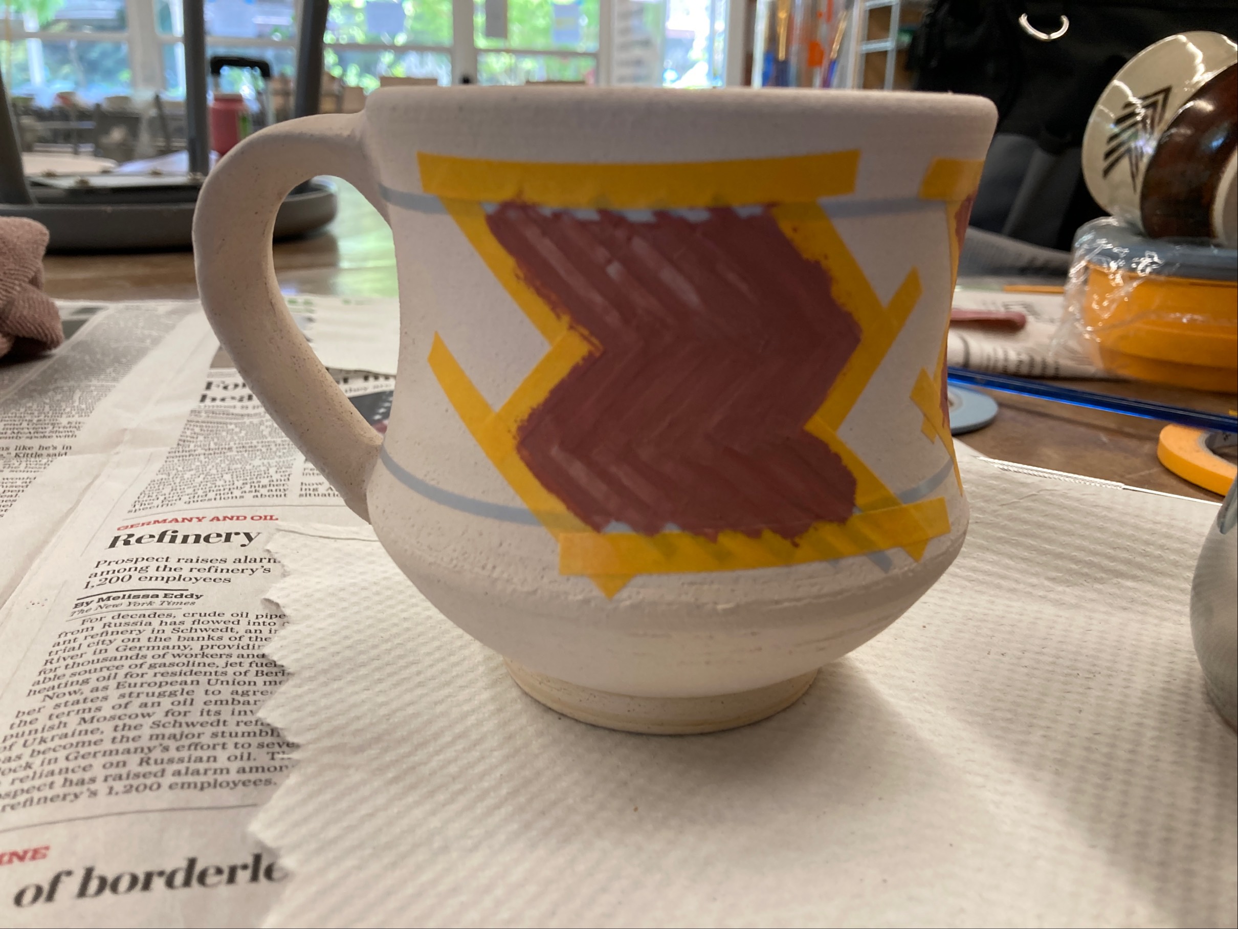 Iron Red glaze Dipped Outside (And brushed)