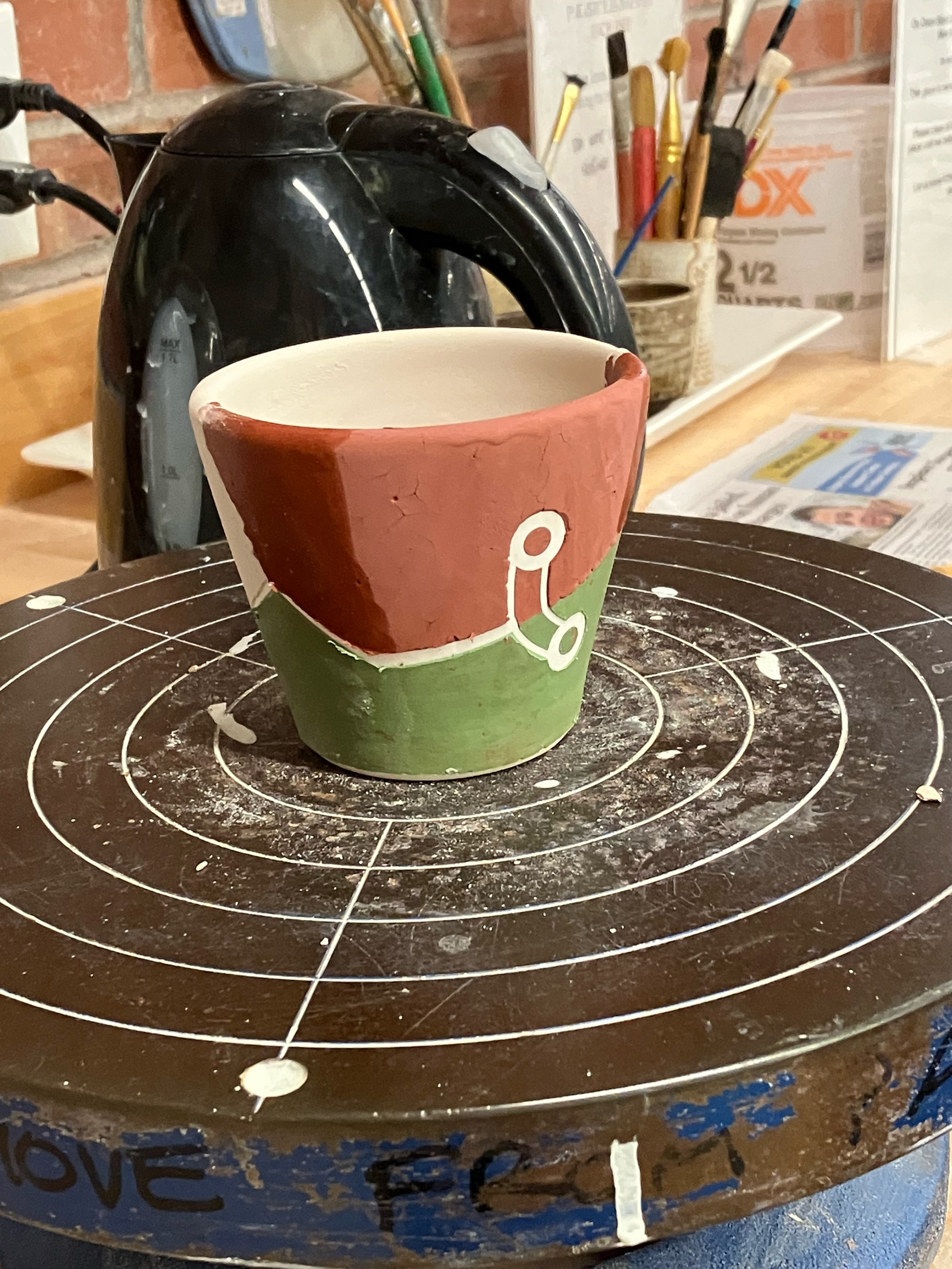 Black Engobe underglaze 2x Brushed Outside